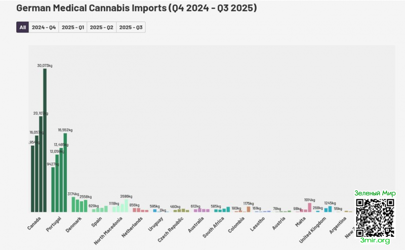 К сентябрю 2025 года был исчерпан лимит на ввоз лекарственного каннабиса из-за границы, составлявший 122 тонны, поэтому власти были вынуждены повысить квоту на 70 тонн до 192 тонн. В первых трёх кварталах в страну импортировали 142,3 тонны марихуаны, поэтому в четвёртом триместре немцы смогут купить за рубежом максимум 49,7 тонны.