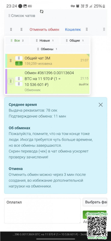 После, в сплывающем окне подтвердить выбор нажав "Ок", создастся чат с обменником и далее следуйте инструкциям в чате.