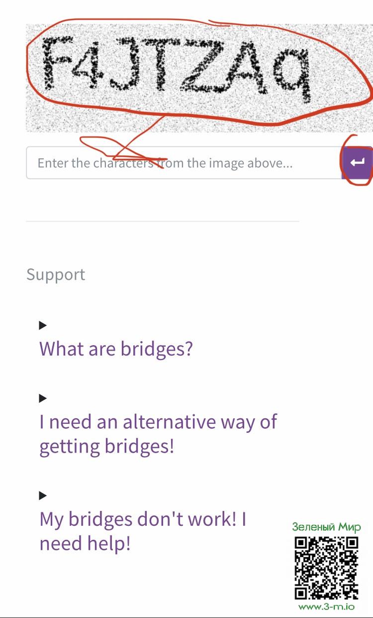 Для этого заходим на вот этот сайт: https://bridges.torproject.org/bridges?transport=obfs4 (официальный сайт проекта Tor), где видем капчу.