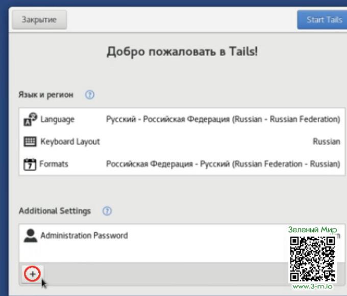 2. Нажимаем кнопку "Start Tails/Запустить Tails".
