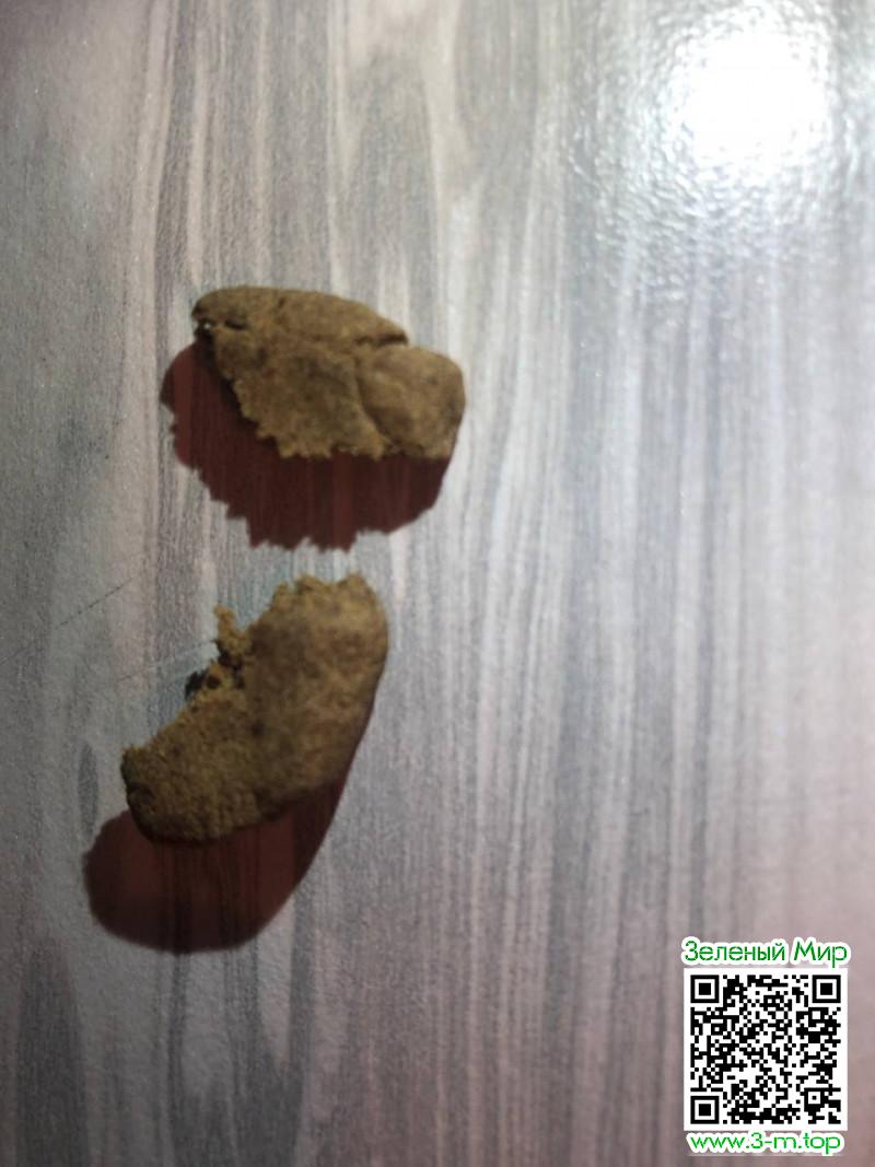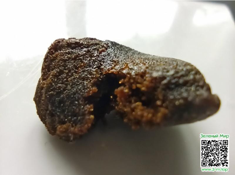Гаш темный, на разломе коричневый. Очень мягкий, слегка мажется, не рассыпчатый. Запах шишки в меру сильный.