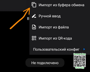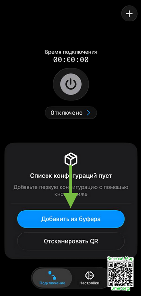 3) Заходите в приложение v2RayTun и нажимаете на кнопку "Добавить из буфера" или сканируете qr код из поста выше и разрешаете вставку.