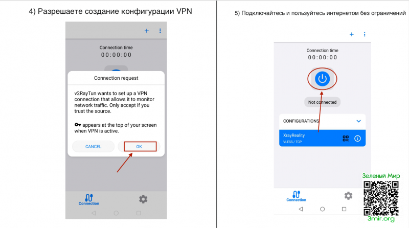 При первом подключении система MacOS попросит разрешение для v2RayTun — подтвердите его.
