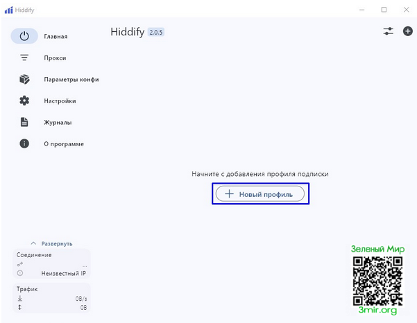 3) Открываете приложение Hiddify и нажимаете кнопку «Новый профиль».
