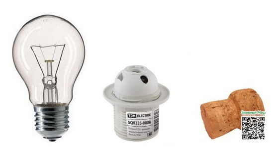Подгоняем пробку из под шампанского под отверстие в патроне (чтобы всё плотно сидело), по контуру можно пройтись клеем.