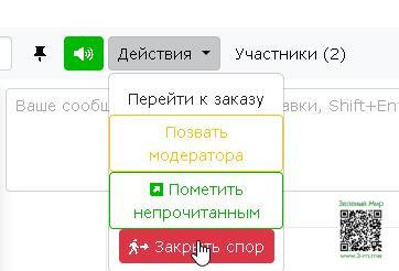 Support_enjoyer, в чате спора кнопка Действия > Закрыть спор